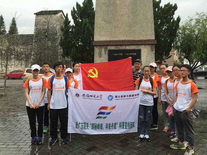 地理科学专业青年教师吴立副教授带着校级重点团队“探秘岭南,科普丹霞”科普宣传团队的队员们远赴广东韶关丹霞山,在考察该地区地质地貌、制作丹霞科普宣传材料的同时,也不忘与实践团队中的党员和入党积极分子分享丹霞山的革命斗争史,带给同学们精神的洗礼。