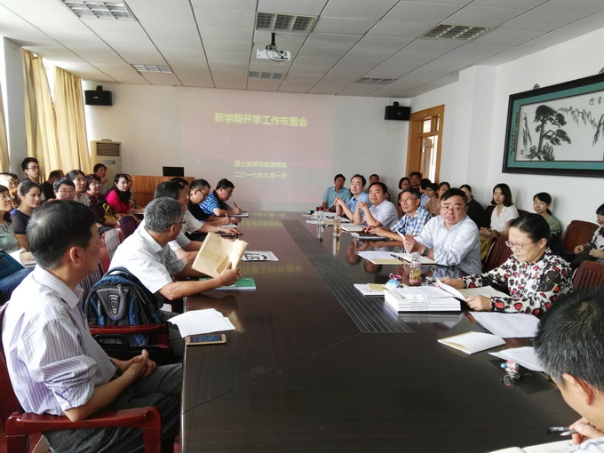 91日下午,学院在三楼会议室召开新学期工作布置会,院领导班子和全体教职工参加会议。方凤满副院长布置了开学初的“三教”落实工作,提醒第一天上课的老师带好上课材料,按时上课。对暑期课程大纲、期末试卷检查情况、毕业论文检查情况进行通报并落实整改任务,进一步推进本科教学评估工作。新学期的任务仍然非常繁重,尤其是许多重点工作和重点任务需要推进和突破,需要广大教职工始终保持奋发有为的精神状态,持续用力,扎实推进。
