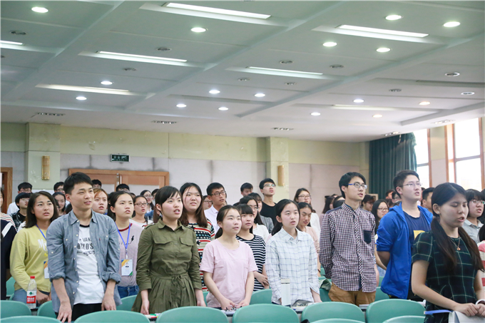 动员讲话结束后,主持人宣读2016年暑期社会实践优秀指导老师和“先进个人”名单乔静为获奖老师、获奖同学颁奖并合影留念。最后动员大会在洪亮的团歌声中结束。