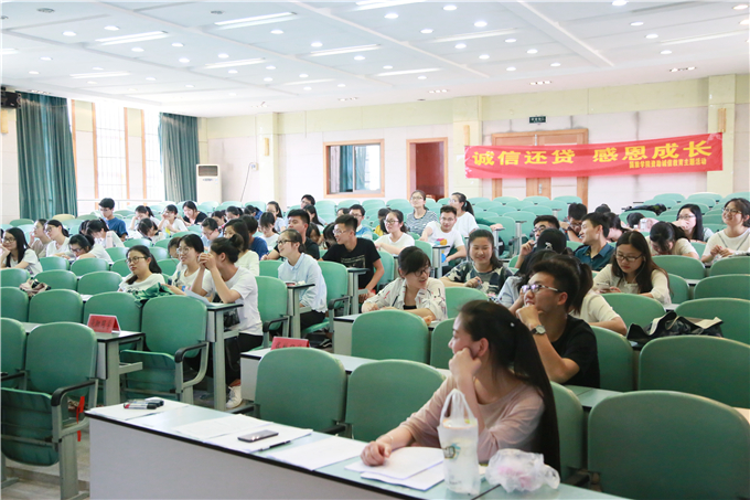 5月27日下午一点,院辅导员吴燕带领全院申请助学贷款和获得过各类资助的同学齐聚国旅实验楼101会议室,观看了一部以动画形式展现、以生活为背景、以学生为主角的诚信教育宣传片。宣传片以生动的情节,形象地为同学们传递了诚信为贵的思想。诚信教育贷款知识竞赛紧跟在宣传片之后进行,各年级同学争先抢答,主持人读题话音未落便有同学站起身来说出题目的正确答案。通过数道诚信贷款小知识竞答,掌握了同学对此类知识的了解程度,同时也对诚信贷款知识盲点进行了一定程度的扫除。