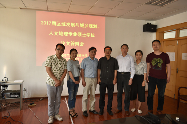 的焦华富教授、杨兴柱教授、赵春雨教授、李俊峰副教授以及韩玉刚副教授作为答辩委员。此次答辩的学生包括区域发展与城乡规划专业的三名同学以及人文地理专业的四名同学。现场旁听人员达到30余人。