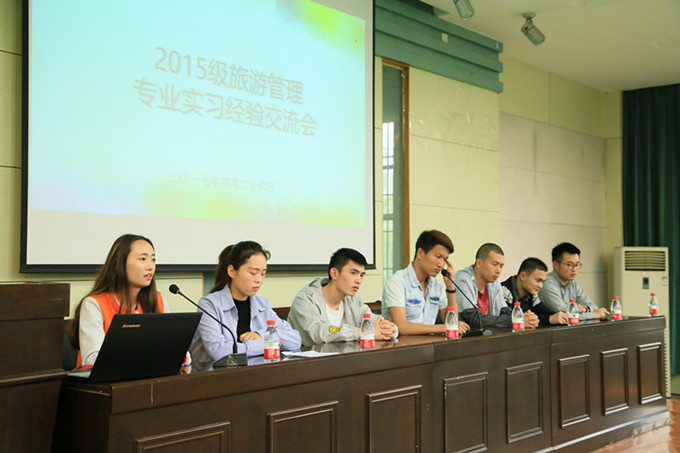 本网讯(国旅学院 郭雨琪)2017年4月26日,2015级旅游管理专业于国旅实验楼101教室召开专业实习培训会暨经验交流会。洪娟老师、吴燕辅导员及2014级旅游管理专业学生代表出席活动,2015级旅游管理专业同学全体参与。