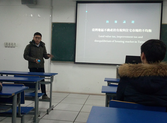 实验楼202教室,作了题为“台湾地区不动产持有税与住宅市场的不均衡”的学术讲座。相关专业老师及研究生、本科生聆听了报告。