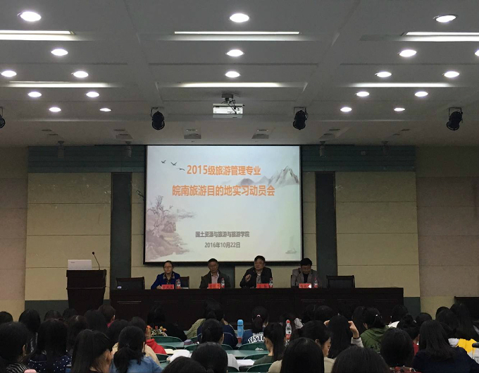 本网讯(国旅学院 郭雨琪)1022日下午,2015级旅游管理专业皖南旅游目的地实习动员大会在国旅学院实验楼101教室召开。党委书记贾冠忠院长苏勤、教学副院长方凤满、专业负责人杨效忠、指导老师钱璐、辅导员吴燕以及2015级旅游管理专业全体学生参加了此次会议。校科研处处长陆林给学生作黄山地区综合实习指导讲座。