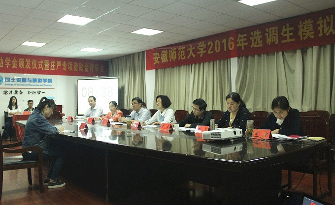)、党委组织部主办,国旅学院、历社学院、数计学院、环工学院联合承办的2016年选调生模拟面试在国旅学院会议室成功举办,校党委组织部部长季爱新,党委学工部部长、学生处长台启权,文学院写作教研室主任、副教授芮瑞和相关学院党委副书记担任了模拟面试考官,来自4个学院的14位选调生入围考生参加了模拟面试,20多位备战2017年选调生、公务员考试的三、四年级学生代表进行了观摩学习。