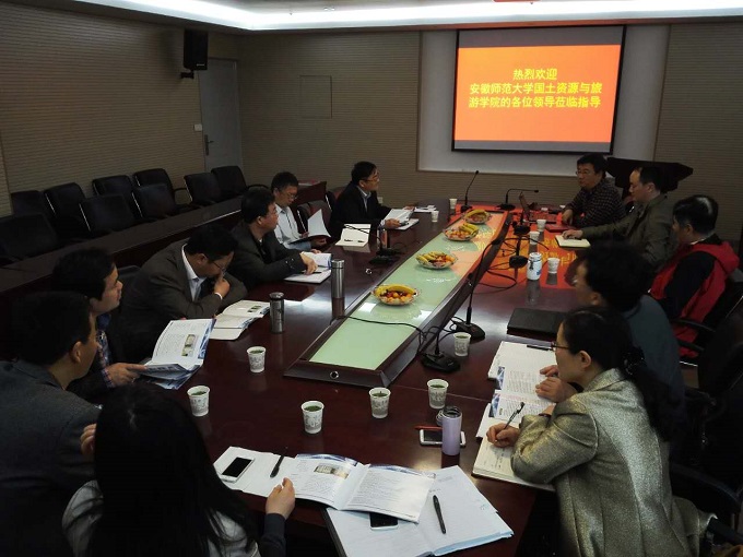 对汤国安院长等南师大同行的热情接待表示感谢,他介绍了本次调研的主要目的和背景,并就学院正在开展的十三五规划制订和人才培养方案修订等近期重点工作和对方进行了深入交流。贾冠忠代表学院向汤国安院长等学界同行提出邀请,希望双方进一步密切关系、加强合作。交流中,双方还围绕教学改革创新、学科平台建设、标志性教材和科研成果培育、创新性本科人才培养等问题进行了深入探讨。会后,调研组一行还实地走访了该校地理科学国家级实验教学示范中心、实验室和研究生工作室等场所。