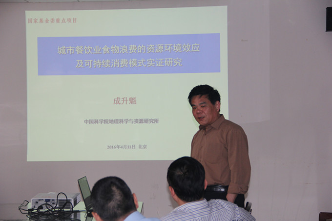 2016年4月14日下午16:00,中国自然资源学会理事长,中国科学院地理科学与资源研究所成升魁研究员在院三楼会议室,作了题为“城市餐饮业食物浪费的环境效应及可持续消费模式实证研究” 的学术报告。学院院相关专业老师与研究生聆听了本次报告。