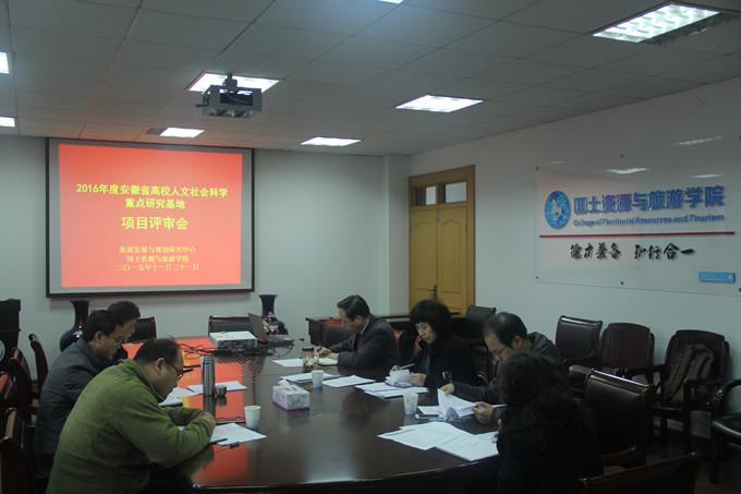 旅游发展与规划研究中心在国旅学院四楼会议室召开2016年度省高校人文社科重点研究基地项目评审会。校科研处处长、中心主任陆林教授,池州学院胡文海教授,安庆师范大学周葆华教授,国旅学院院长焦华富教授,副院长卢松教授,中心常务副主任杨钊教授出席了评审会,会议由陆林教授主持。
