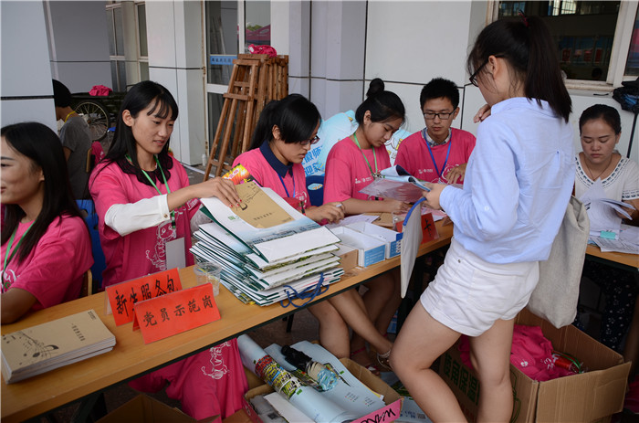 国旅学院在继承往年成功做法的同时,不断创新迎新工作思路和方法。在迎新现场,国旅学院学生党员组成“党员迎新服务示范岗”,充分发挥学生党员的模范带头作用,用心、用情竭诚为广大新生服务。学院特别为新生准备了“迎新服务大礼包”,包含校园地图、新生攻略、专业简介、新生家长会邀请函、防盗防骗安全指南、军训期间活动一览表等材料,为新生了解校园环境、提高安全意识、熟悉新生活动安排提供便利和帮助。2015级旅游管理专业学生郑芮在接受采访时激动地说:“新生服务包很丰富,对于初来乍到的新生来说太管用了,棒棒哒!还要感谢学长学姐的热心接待和服务,谢谢你们。”