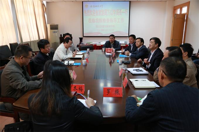 10月28日上午,安徽省旅游局万以学局长一行莅临国旅学院调研指导,并与部分同志进行了座谈。校党委常委、副校长王绍武,校党委常委、校办主任李忠,校科研处长、旅游发展与规划研究中心主任陆林以及国旅学院领导参加了座谈。