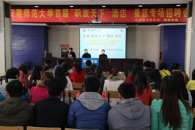 本网讯(国旅学院 吴辉)为了拓宽大学生的就业渠道,有针对性的给企业和学生提供就业服务平台,提高毕业生就业质量和签约成功率。315日,校学生工作处、国旅学院在就业报告大厅联合举办了我校首届“职旅天下”酒店、景区专场招聘会。来自国内外著名酒店及景区旅游企业单位共27家,200余名师大学子参加了本次专场招聘会。