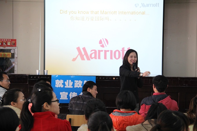 此次专场招聘会包括企业宣讲和现场招聘两个部分,十五家用人单位先后登台,各出奇招,努力动员毕业生应聘。上海浦西洲际酒店的何总监详细介绍了洲际酒店集团几百年的发展历程,分享了上海浦西洲际酒店的精彩图片,并为毕业生进入酒店后的发展勾勒了美好职业蓝图。随后苏州中茵皇冠假日酒店、杭州JW万豪酒店、宜兴凯宾斯基酒店、浙江开元酒店集团等企业代表也纷纷上台进行宣讲,激扬的话语点燃了在场每一位毕业生的希望与热情。