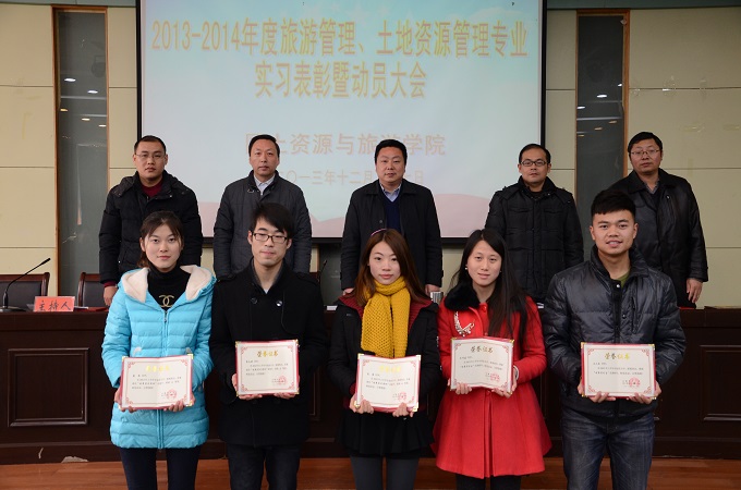 首先,院长焦华富宣读了《关于表彰2010级旅游管理、土地资源管理第二批专业实习优秀小组、优秀个人和优秀案例的决定》,授予深圳圣庭院大酒店实习小组、南京国图信息产业股份有限公司实习小组“优秀实习小组”称号;授予焦晓晴等12人“优秀实习生”称号;夏萌等14名同学撰写的实习案例被评为“优秀实习案例”。