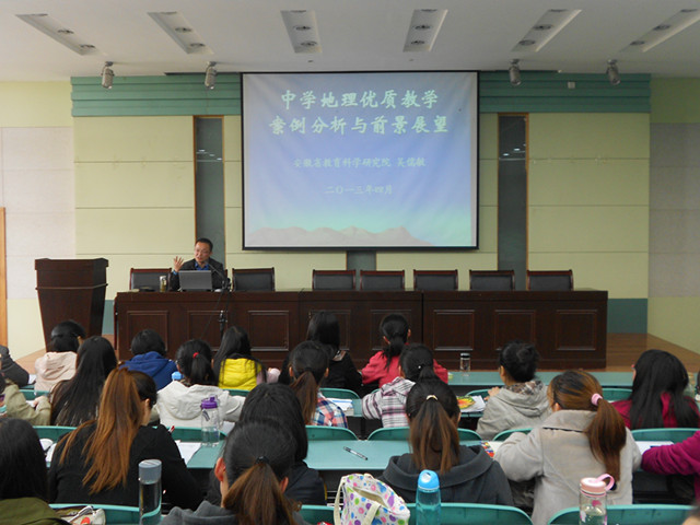 全日制学科教学(地理)和课程与教学论(地理)专业全体硕士生、2011级地理科学国家级特色本科专业创新班同学共100多人聆听报告会,国土资源与旅游学院教学副院长卢松教授主持了本次讲座。