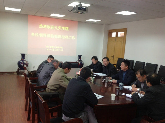 领导班子和旅游系主任在学院三楼会议室接待了来宾一行。