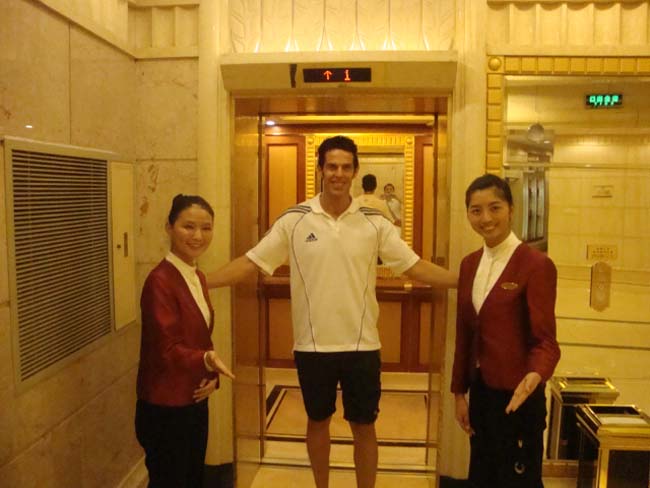 8月1日以来, 十名志愿者分别在礼宾部、緑涧廊大堂吧、廷韵咖啡厅、菲苑咖啡厅开展志愿服务。十名志愿者以其流利的英语口语,为国际友人提供服务。团队成员王敏同学被分配到緑涧廊大堂吧,在工作期间,她以流利的英语与外国客人交流,受到了客人的认可,因此,领班有意识的安排她接待外国客人。有时,领班和其他同事也会在空闲时请她帮忙补习英语。8月7日,足球裁判入住酒店以来,翟柳婷同学以其良好的口语,协助大运工作人员为来自巴西、日本、英国、韩国、马来西亚等国家的运动员们作翻译工作。翟柳婷同学耐心周到的服务,解决了外国裁判的难题,赢得了外国友人的一致好评,两位巴西的裁判为表示感谢,送给我们的两位队员纪念品。( 张梓桐)