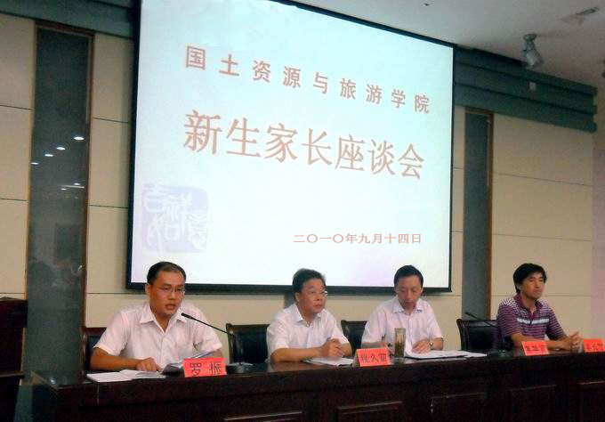 914下午,学院在该院实验楼101隆重举行了“国旅学院2010级新生家长座谈会”。有近二百位新生家长参加了活动。学院领导班子成员、系主任以及班主任老师参加了家长会。会议由院党委副书记罗振主持。
