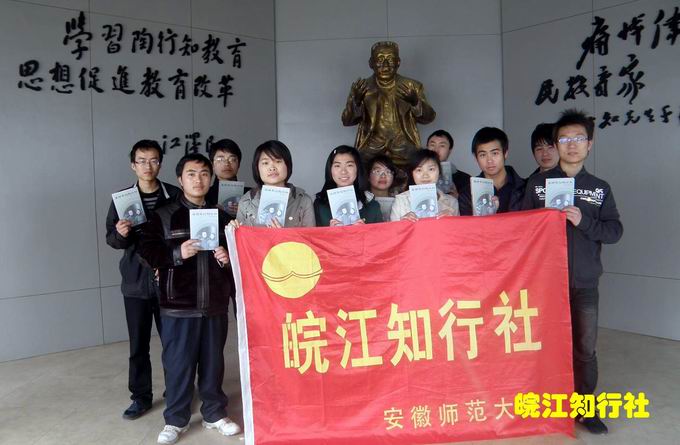 皖江知行社依托学院地理科学这一国家级特色专业建设点的学科优势,于2010年3月27日至28日,应邀出席在宁召开的“行而知晓”宁皖高校行知思想研讨会。此次研讨会旨在探讨伟大的人民教育家陶行知先生的教育思想,共谋学生社团在光大“行知思想”中的作用和任务。