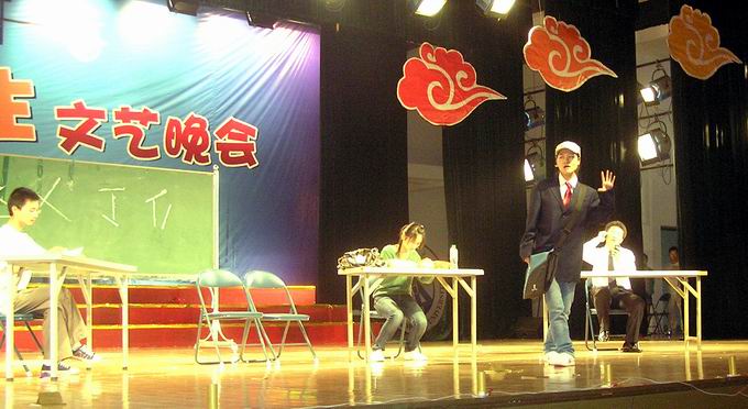 晚会在齿轮乐队富有激情的表演中拉开了的帷幕。二胡钢琴合奏《赛马》,民族舞《花溪 花溪》为晚会涂抹上华丽的色彩,演绎出大学生的青春与浪漫;活力四射的现代舞和扣人心弦的武术表演,给人以视觉上的震撼,不仅使观众欣赏到动感之美,更让人感受到大学生朝气蓬勃的精神风貌;小品《都是QQ惹的祸》更是将晚会推向了高潮,此次晚会的演员不仅有学生,老师也积极的参与进来,让整台晚会惊喜连连,由梁燕老师等表演的配乐诗朗诵《我们一起笑着哭着长大》就是以追忆大学四年生活的点点滴滴为素材而所创作的,饱含深情的朗诵让在场的每一位观众为之感动。歌曲串烧,戏曲连唱,女生独唱等精彩纷呈的节目使晚会高潮迭起。最后在优美动听的大合唱《让世界充满爱》歌声中,晚会落下帷幕。