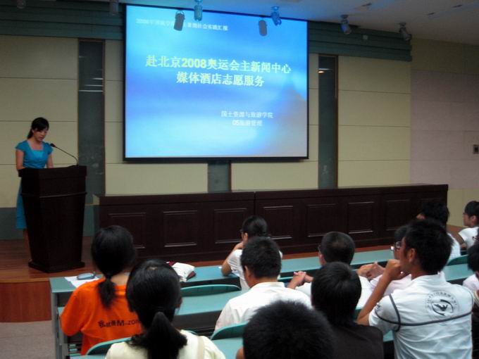 本次汇报作品均经过各班团小组、团支部自评到院团委初评、院暑期社会实践领导组复评层层评比筛选而出的。通过汇报,国旅学子服务奥运、致力环保、追求和谐的形象树立在08新生心中。据悉,随后国旅学院将在06、07级全体学生中以主题班会的形式继续开展巡回宣讲,切实将大学生暑期社会实践的成果和精神发扬光大。