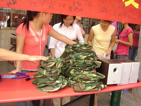 爱心者协会开展的募捐军服活动让原本寂静的校园一下子活跃了起来。