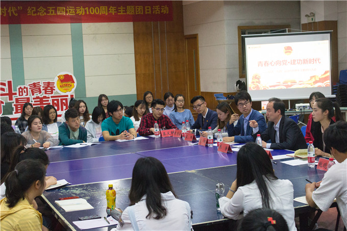 在院实验楼121活动室举办“青春心向党,建功新时代”纪念五四运动100周年主题团日活动。院党委副书记乔静,纪念五四运动100周年大会参会代表、校团委学生副书记王阳,院团委班子成员,院团委、学生会学生骨干代表参加此次活动。活动由院团委书记吴辉主持。