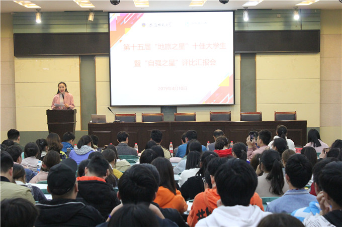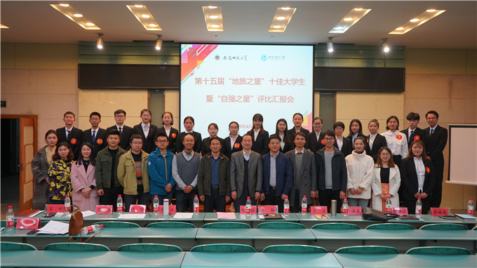 第十五届“地旅之星”十佳大学生暨“自强之星”评比汇报会在实验楼101教室举行。院党委副书记乔静,专业负责人代表杨兴柱、尹寿兵、费罗成,院团委全体班子成员及全体专兼职辅导员出席汇报会并担任评委,近两百学生代表到场聆听并参与评审。