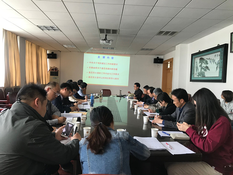 随后,谢超峰作了《基层党建与党支部工作》专题辅导报告。谢超峰从中央关于党的建设工作的新要求、安徽省委关于基层党建的新部署、基层党支部的工作内容与工作要求和基层党支部书记的岗位职责与素养四个方面深入浅出的介绍了如何做好基层党建与党支部工作,并勉励所有人员要认真贯彻落实中央、省委和基层党委的决策部署,撸起袖子加油干,主动担当求作为,全面提升基层党的建设科学化水平,为事业发展保驾护航。