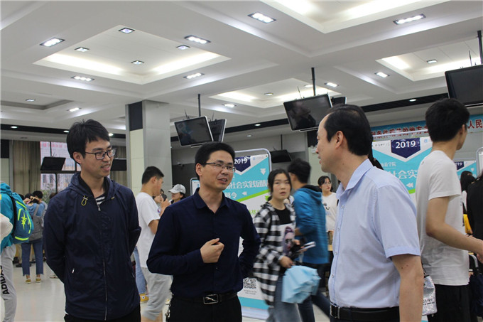 2019年暑期“三下乡”社会实践活动团队招募双选会在大学生活动中心二楼招聘大厅圆满举行。学院50余支团队和800多名同学直接对话,递收简历,相互交流。校团委副书记刘长生、院党委副书记乔静和院团委班子全体成员到场指导。