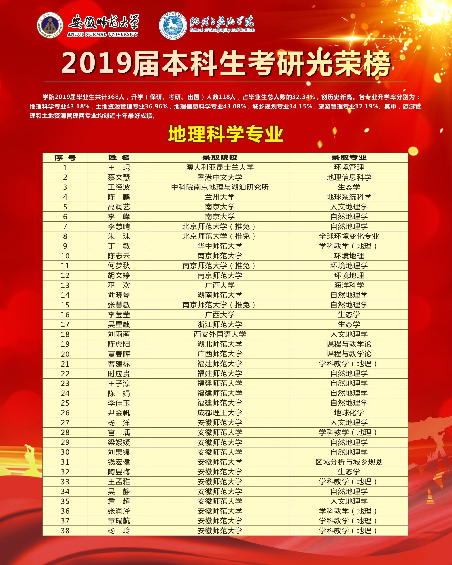 2019届毕业生考研光荣榜