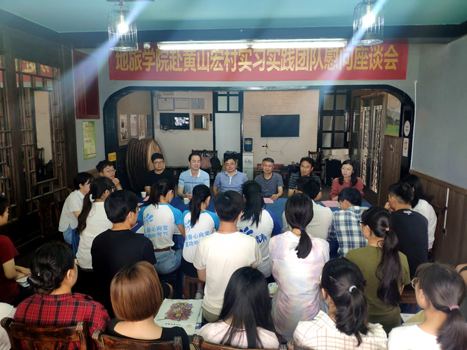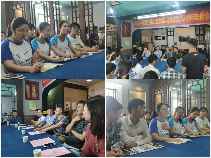 2019年暑期社会实践活动基本概况;团队指导教师代表黄秋实汇报了实习实践活动开展情况;三支在黄山开展实践的团队代表韩萱萱、吕婧、程茜、孙若情汇报了团队基本情况及阶段性实践成果,并分享了实践心得体会;与会师生还围绕暑期社会实践中遇到的困难、收获的感悟等话题进行了深入交流。