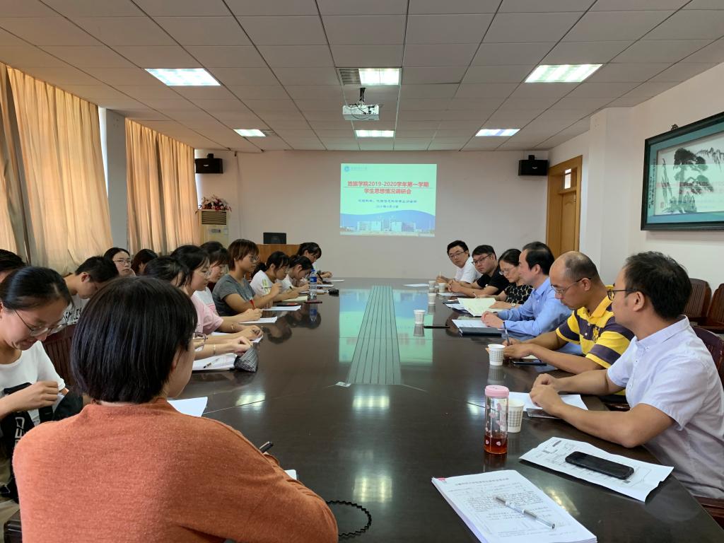 召开新学期学生思想调研师生座谈会。学院党委书记贾冠忠、院长苏勤等学院领导班子成员,各专业负责人、全体专兼职辅导员、各年级学生代表按专业分会场开展座谈会。
