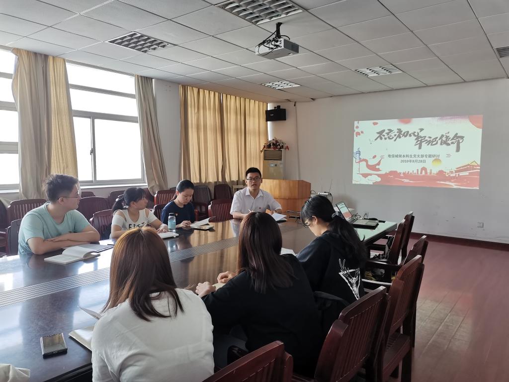 地信城规本科生党支部在院行政楼三楼会议室开展了“不忘初心、牢记使命”主题教育的专题研讨会,在校的全体党员参加了此次会议。研讨会由支部书记陈健主持。