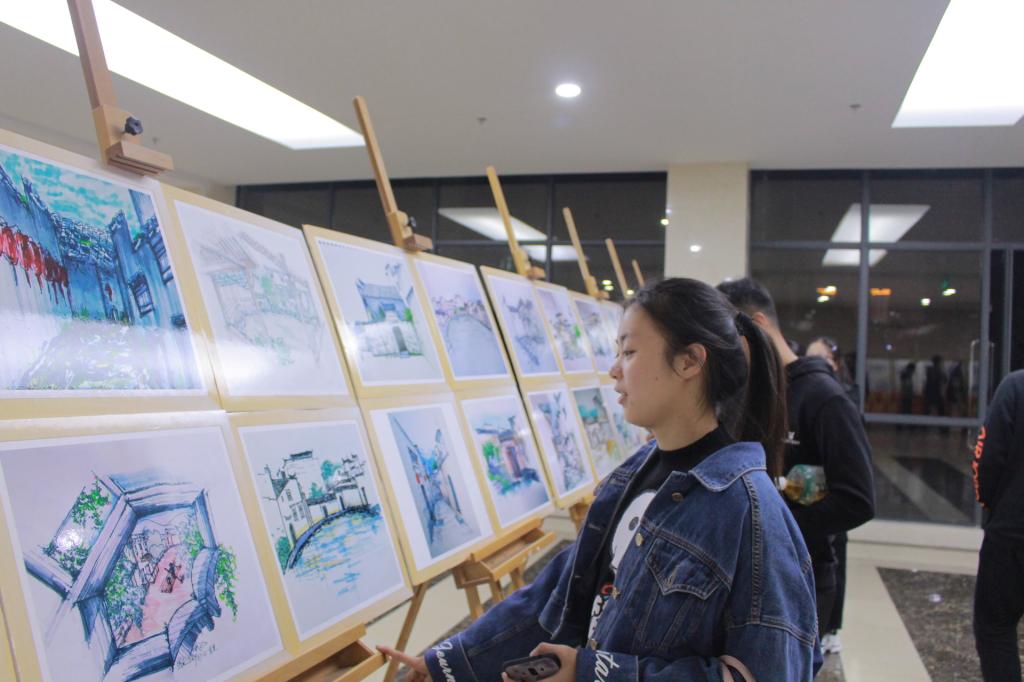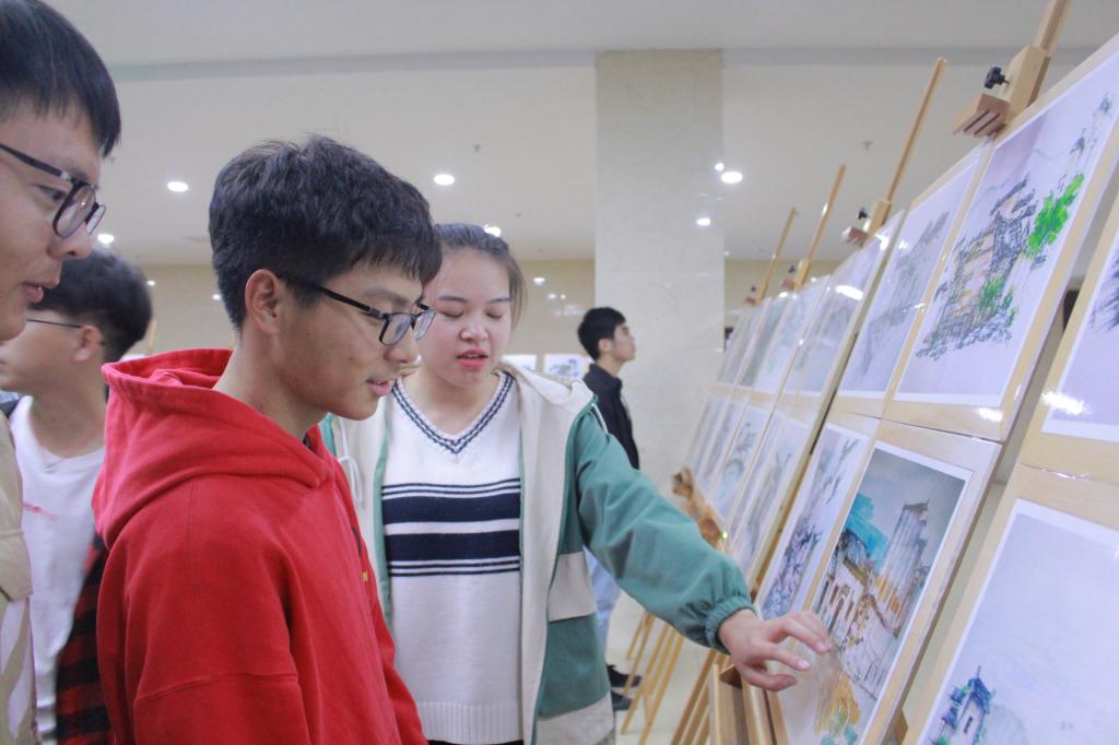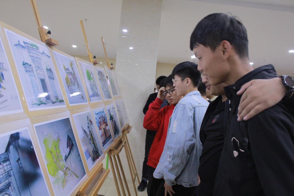 18级城乡规划专业紧跟中央要求,深入学习习近平新时代中国特色社会主义思想,高举中国特色社会主义伟大旗帜,积极开展专业课程思政活动。此次展览前,18级城乡规划专业已于二食堂门口成功举行过一次画展。31日下午,18级城乡规划专业班委成员提前前往理科大楼,做好充足准备以迎接领导和同学。画展很快吸引了前来参加演讲比赛的同学们,19级城乡规划的同学也在老师的号召下来前来观摩学习。此次画展,18城乡规划的同学们将历史与现代结合,以现代绘画风格展现古徽州历史文化,旨在向大一新生普及专业知识,同时向全校师生展示徽州文化风采。