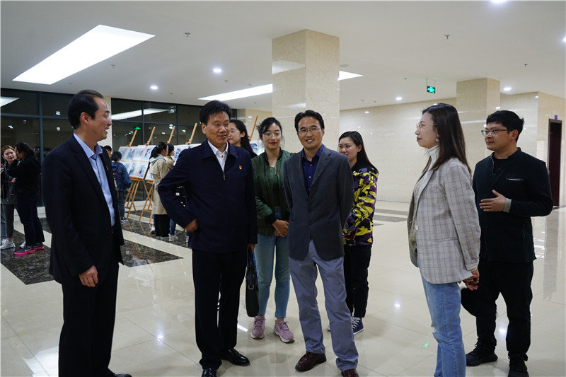 “不忘初心 、牢记使命”主题教育活动暨城规专业课程思政“墨彩宏村”写生作品展写生作品展。校党委常委、副校长毕明福,省委主题教育第十巡回指导组成员、六安市政府办秘书四室主任张成伟,相关单位负责同志和专家,各学院学生工作负责人在院党委副书记乔静、城乡规划专业负责人杨兴柱以及多位专业任课老师、陈祥云的陪同下参观了画展。