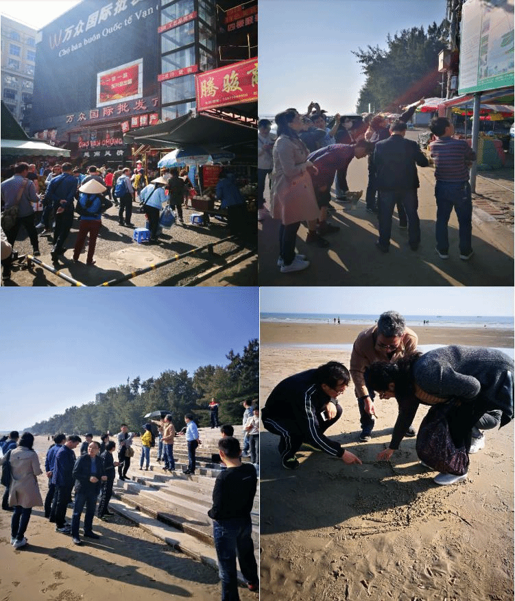 本次研修活动行程安排紧凑高效。简短的开幕式后,在曾令锋教授的带领下,一行人驱车从南宁赶往东兴,曾教授沿途向大家介绍广西南部自然地理特征,从岩层到岩性,从海岸地貌到水系发育,让中学老师对广西南部地区有了综合认知。到达东兴口岸,曾教授向大家介绍了东兴口岸的基本情况以及边境贸易的发展情况。李俊峰教授结合曾教授介绍的内容向学员们详细解读了边境贸易对区域经济发展的作用,并就如何将考察内容融入中学地理课堂教学与大家在现场展开了热烈讨论。