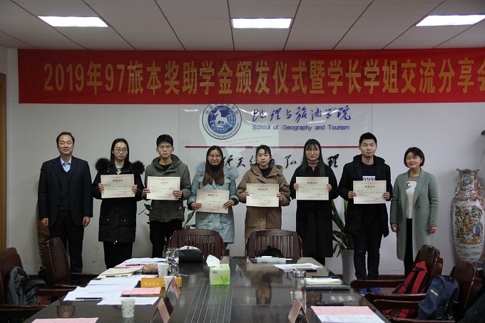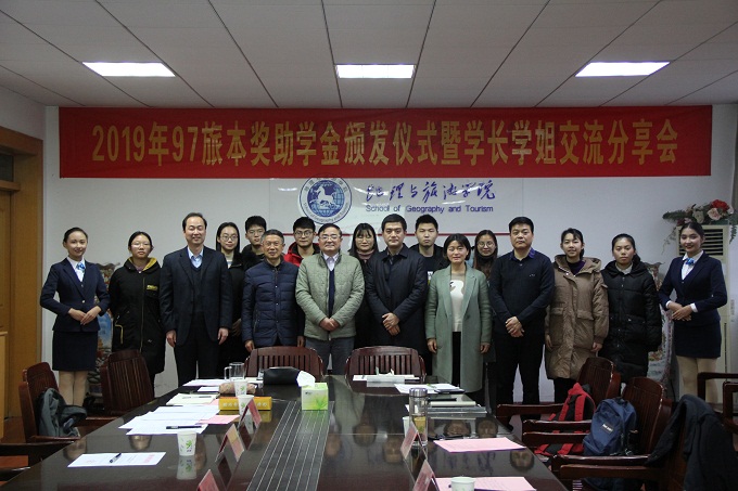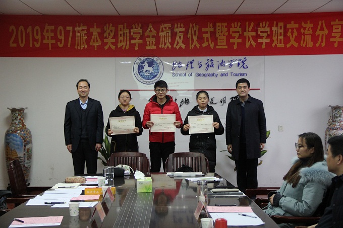 97旅本奖助学金颁奖仪式暨学长学姐交流分享会于学院行政楼三楼会议室举行。我校1997级旅游管理专业本科班毕业生代表安徽工业大学党委常委、学校办公室主任窦贤琨、安徽商贸职业技术学院工商管理系副教授齐莉莉、安徽工业经济职业技术学院人事处张凤琴、色情动漫