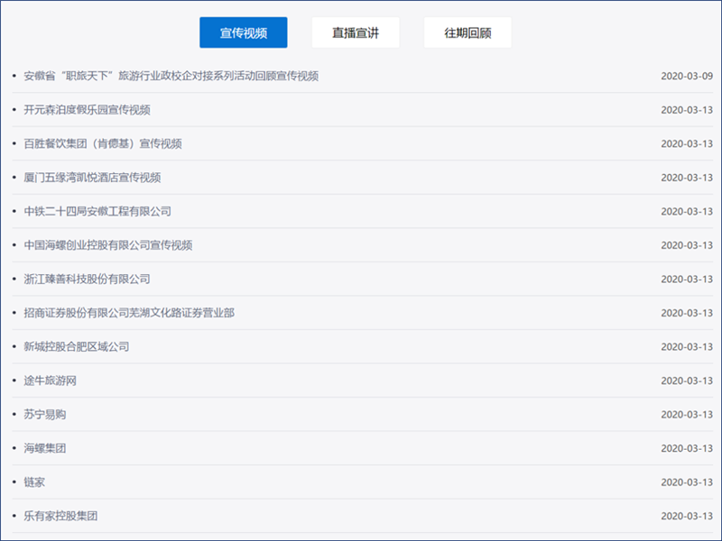据悉,“职旅天下”系列活动自2013年创办至今,已吸引500余家文化、旅游及相关行业知名企业,5000余名毕业生参与,推进了安徽省旅游院校与政府、企业的交流融合,校地合作、校企合作、“洲际”英才学院、“开元”订单班等一批政校企合作项目开花结果,一批创新创业项目和教学成果奖项应运而生,积极推动了各高校旅游及相关专业毕业生就业工作。“职旅天下”活动已成为安徽省乃至华东地区“起步最早、规模最大、影响最广”的高校旅游行业政校企合作重要平台和就业品牌之一。今年,在全国上下众志成城共抗新型冠状病毒肺炎疫情防控的背景下,活动组委会积极响应国家和安徽省各级党委政府号召,顺应潮流,主动作为,创新采取“互联网+就业”形式,自主开发、创建“职旅天下”专属招聘网站平台,为政校企各方搭建实时、动态、全天候的“政策信息发布窗口、空中就业促进桥梁、业界发展线上论坛”,实现“云招聘”“云服务”“云指导”,为疫情防控形势下高校就业促进工作赋能,为安徽省“旅游强省”建设目标服务,为全面建设现代化五大发展美好安徽助力。