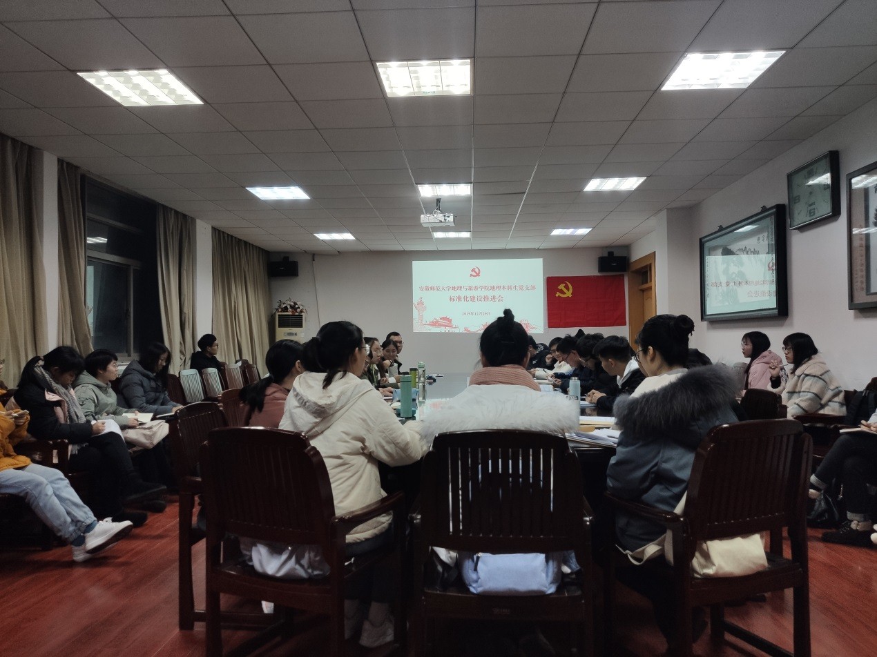 罗勇 齐小学),根据学校《推进基层党组织标准化建设的实施意见》《关于做好2019年度学校基层党组织标准化建设验收工作的通知》精神要求,12月29日晚,地理本科生党支部在学院行政楼三楼会议室召开党支部标准化建设推进会,党支部在校正式党员、预备党员参加会议。会议由支部书记齐小学主持。