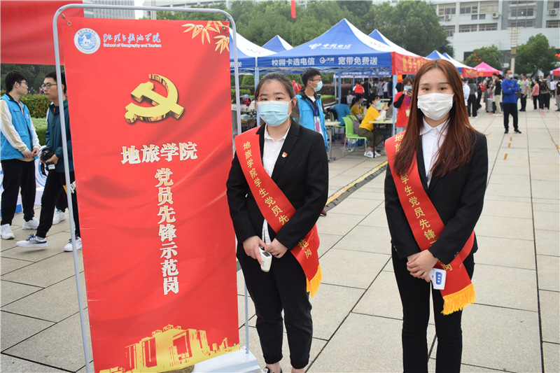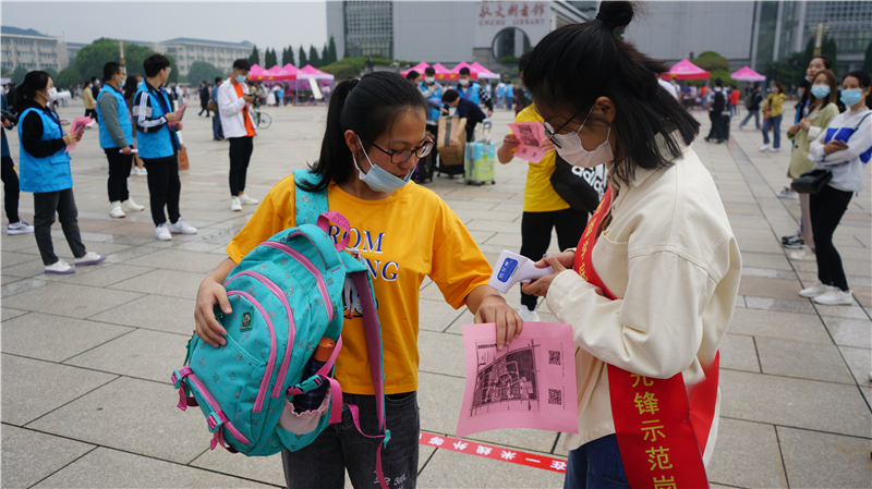 学生党员代表组成的“党员先锋示范岗”的学生党员们也充分发挥党员模范带头作用,为新生及家长测量体温,做疫情防控宣传,主动提供帮助。