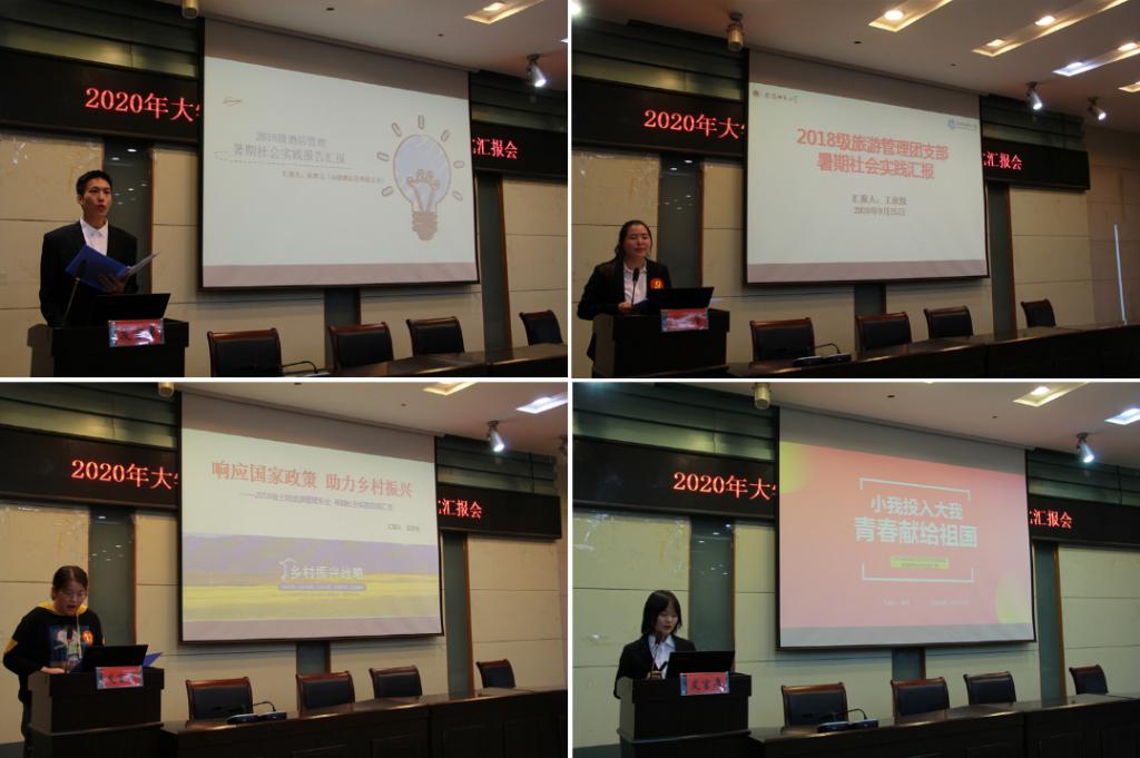 参加本次评比汇报会有来自2018级、2019级各专业的8支重点团队、7个班级团支部共15组队伍。各团支部或团队汇报人流畅的汇报演讲结合图文并茂的PPT展示,从整体概况、实践内容、成果展示、心得体会等方面进行汇报。生动形象地汇报了实践学子们暑期实践的参与情况和收获感悟,为评委老师和同学们展现了一幅五彩纷呈的暑期实践画卷。