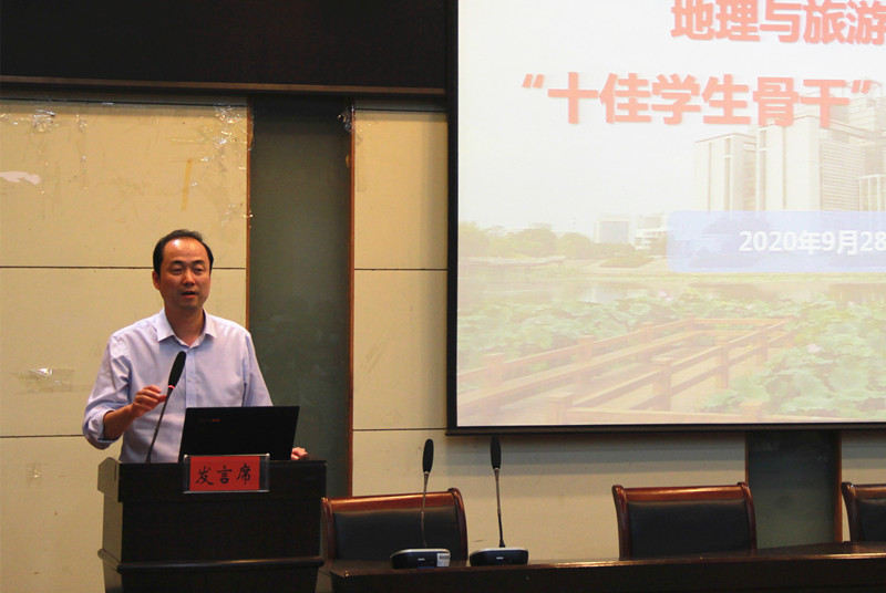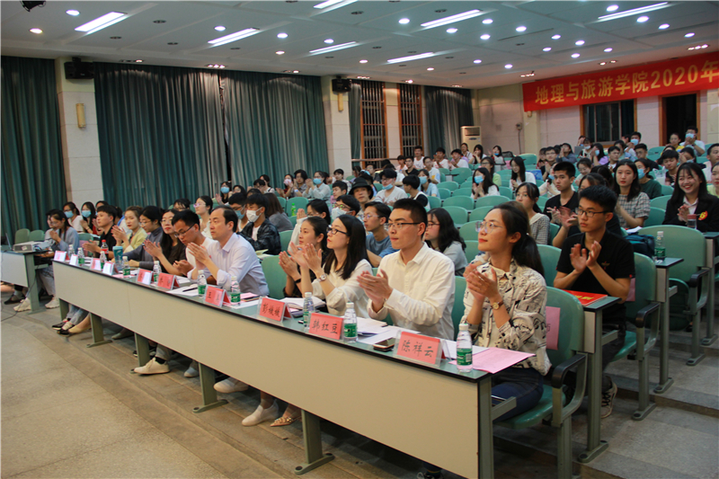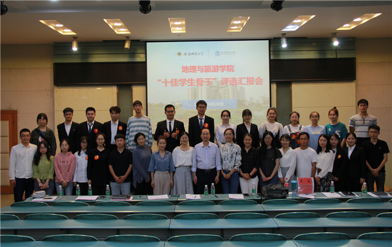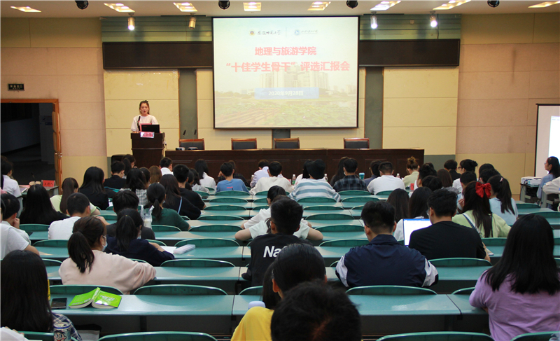 陈祥云、陶慧敏)为表彰鼓励上一学年表现突出的优秀学生骨干,发挥朋辈引领教育作用。9月28日晚,地理与旅游学院第一届“地旅风华”十佳学生骨干评选汇报会在院实验楼101报告厅举行,院党委副书记乔静,院团委书记陈祥云,院团委副书记徐倩,学院全体专兼职辅导员出席汇报会并担任评委,此外,从各班推选出的30名学生代表评审团、各年级团支部成员代表组成的100名学生观众到场聆听。