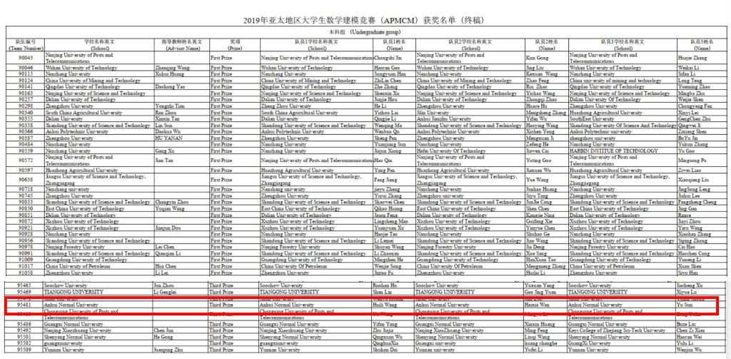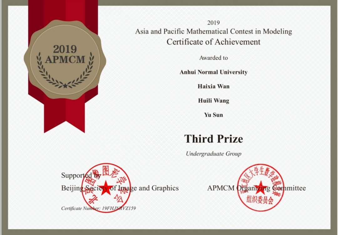 色情动漫 学子喜获2019年第九届APMCM亚太地区大学生数学建模竞赛三等奖