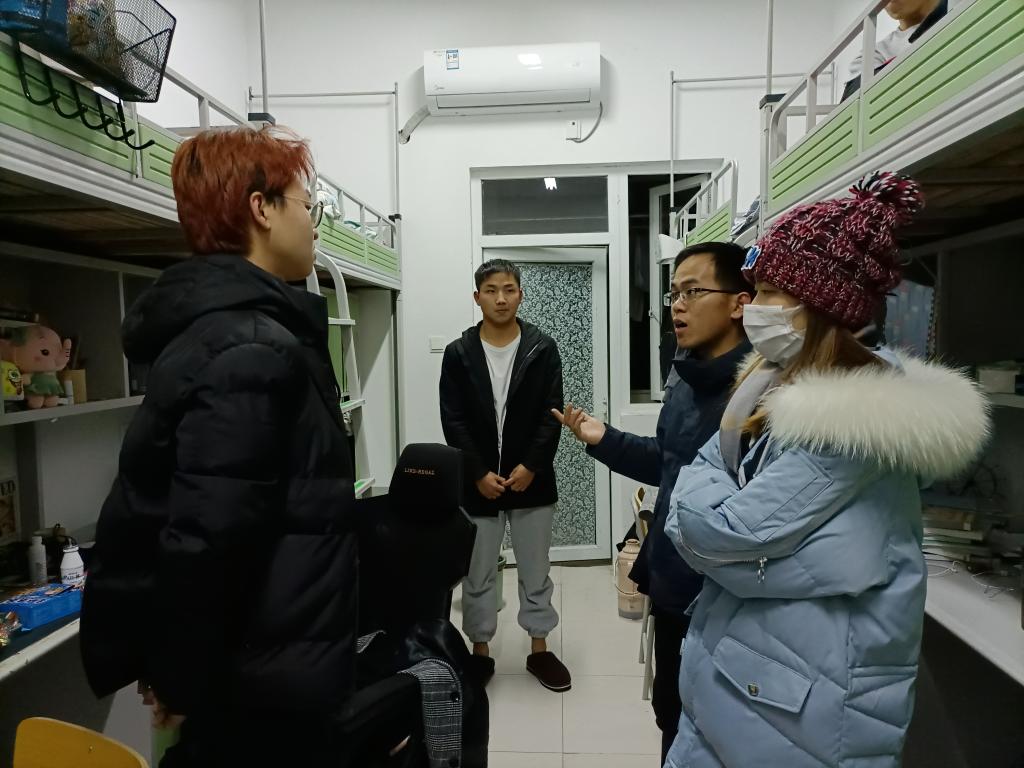 党委副书记乔静带领全体辅导员深入寝室开展冬季夜间专项安全突击排查工作。