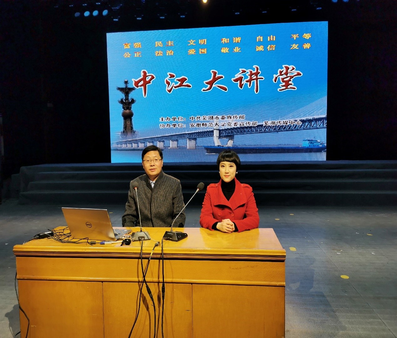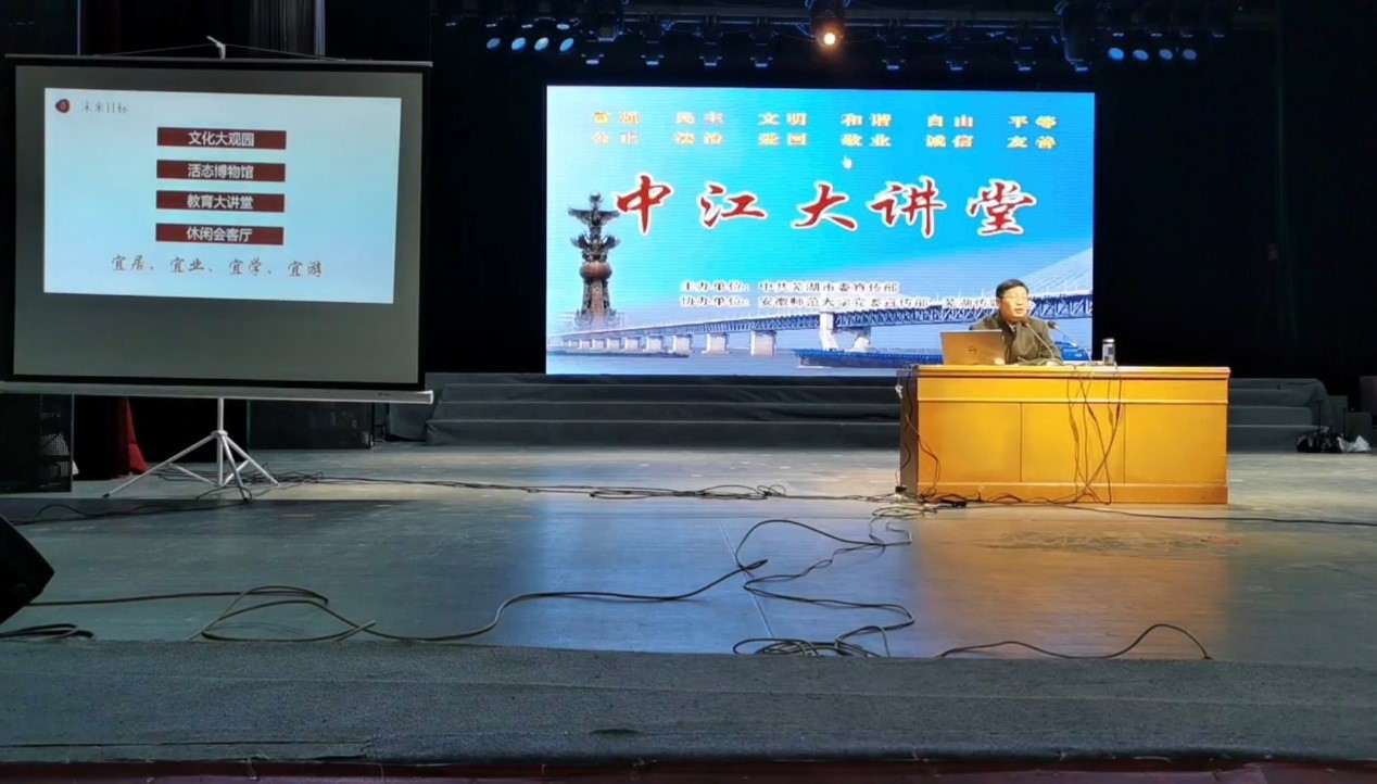 党委宣传部和芜湖传媒中心协办的“中江大讲堂”在芜湖市百花剧场开讲,讲座主题为“芜湖古城的昨天、今天和明天”。当天,芜湖新闻网和今日芜湖APP均进行了全程视频直播,现场直播参与人数超过1.6万人。