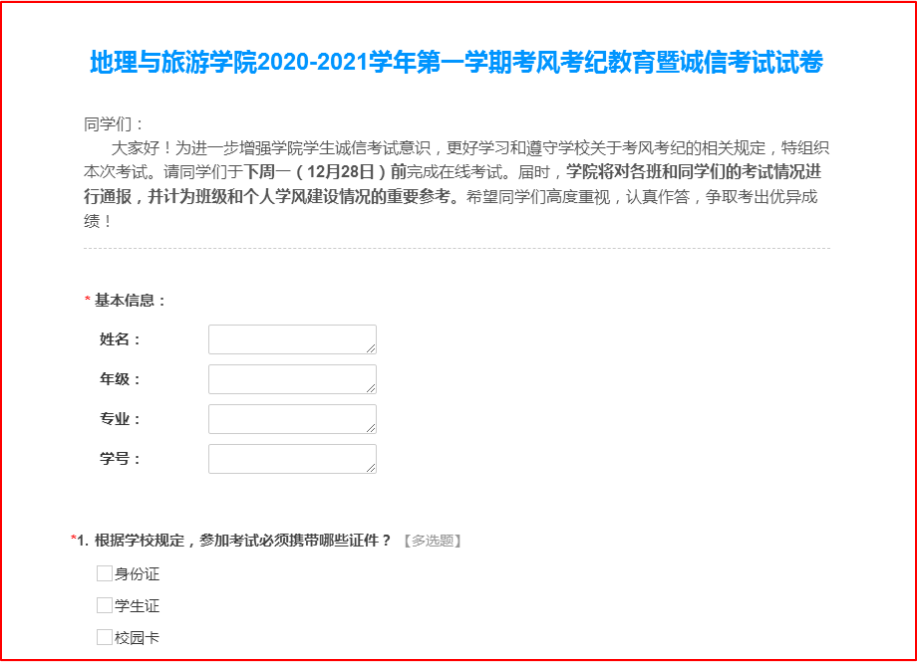 开展线上测试,强化诚信意识。为进一步巩固前期考风考纪暨诚信考试教育的成果,学院扎实开展考风考纪教育暨诚信考试线上测试,并把考试成绩作为班级和学生个人学风建设的重要参考,对所有参加考试学生的成绩进行写实性通报,让学生牢固树立起诚信考试的思想意识。
