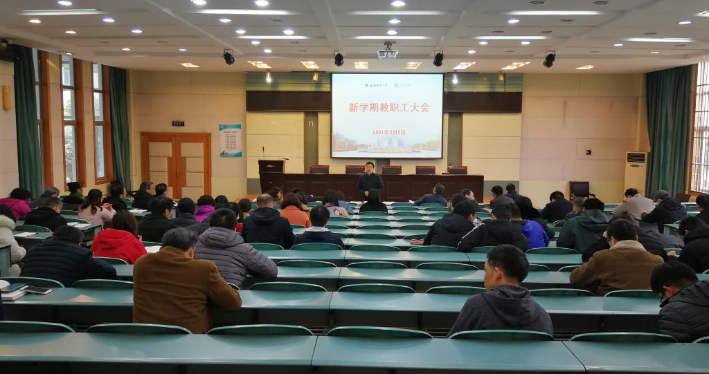 新学期第一次教职工大会在学院实验楼101教室召开。学院全体教职工参加大会,会议由院长苏勤主持。
