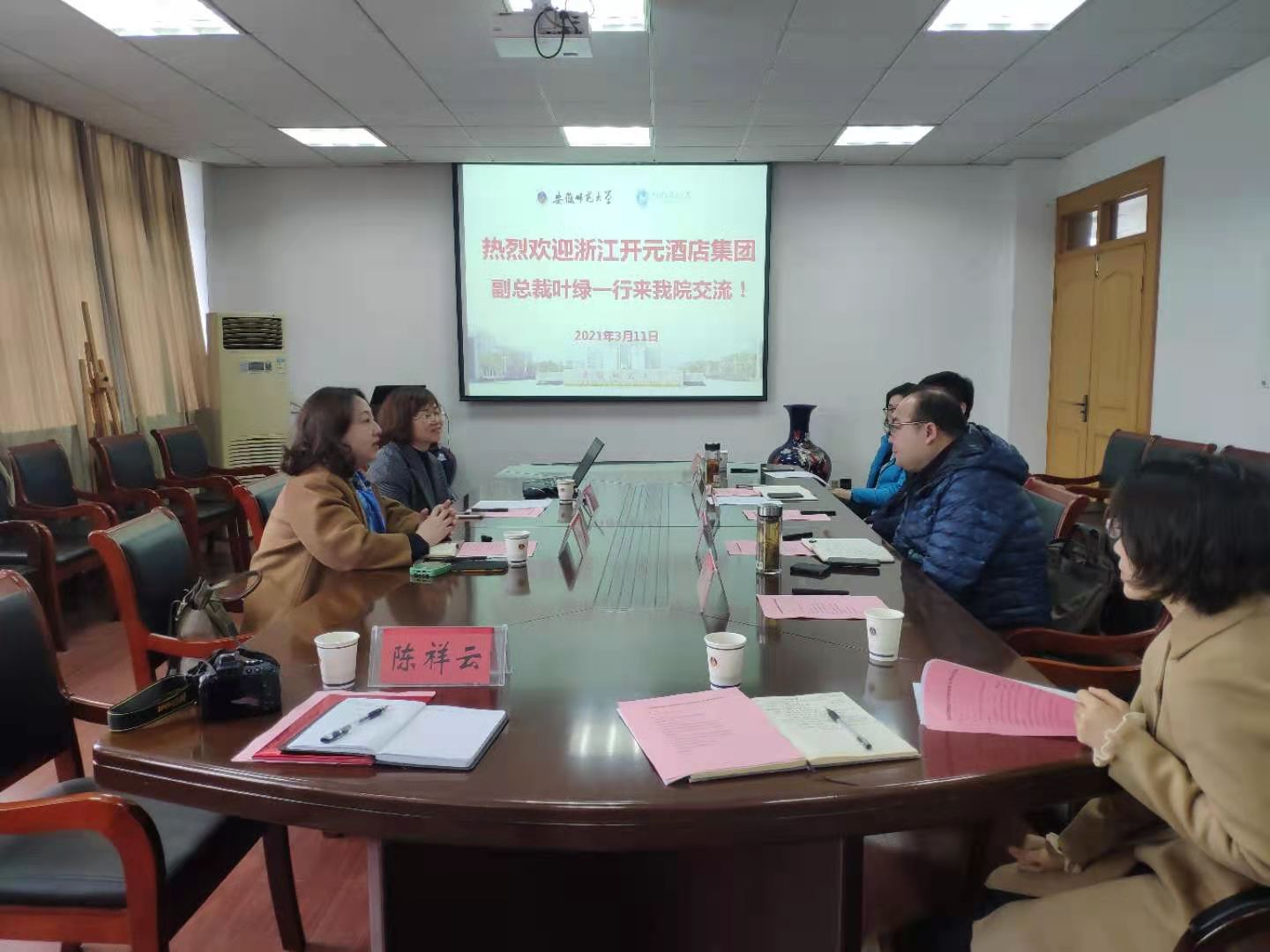 党委书记贾冠忠、院长苏勤、党委副书记乔静、副院长曹卫东,旅游管理专业负责人杨钊、酒店管理专业负责人尹寿兵,学院团委书记陈祥云,以及专业教师代表出席本次合作洽谈活动。