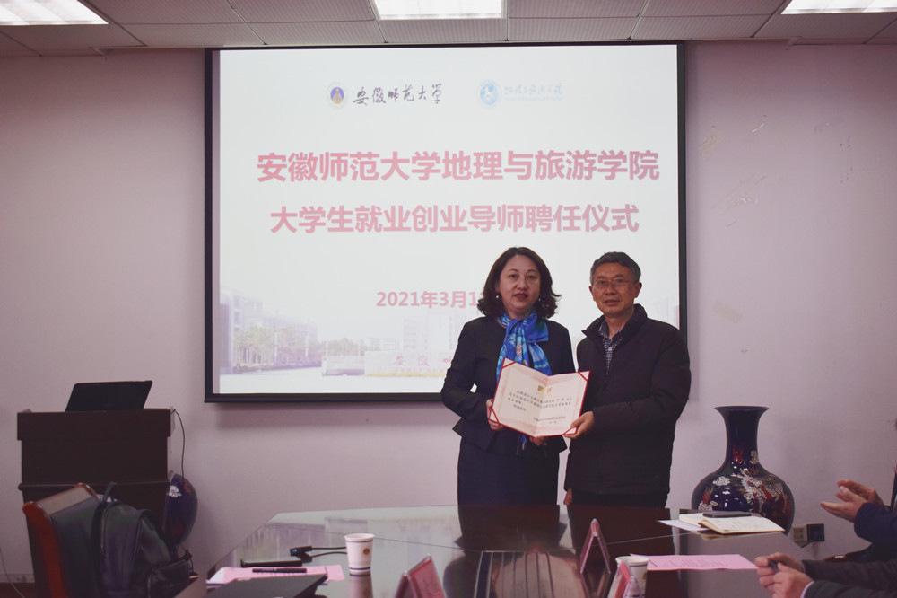大学生就业创业导师,贾冠忠为叶绿颁发聘书。