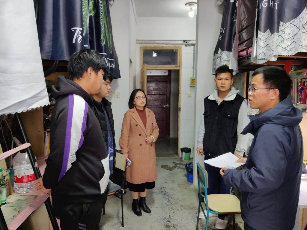 学生宿舍卫生文明检查实施办法》,定期开展学生宿舍安全教育和安全检查专项活动, 3月18日下午,院领导贾冠忠、乔静、汪文文及学院全体辅导员深入全院各专业、各年级学生宿舍进行安全隐患排查。